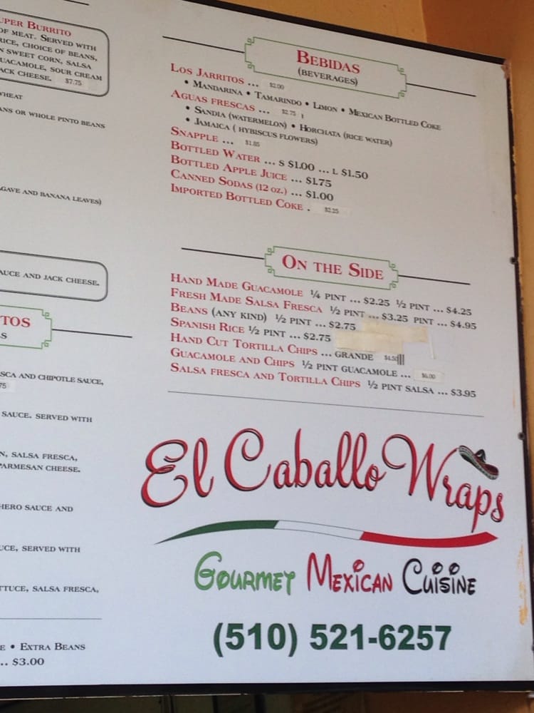 Welcome to El Caballo Wraps, where authentic Mexican flavors come alive in a casual, family-friendly setting. Located at 1108 Lincoln Ave in Alameda, this vibrant eatery offers a diverse menu that caters to both traditional tastes and modern cravings.